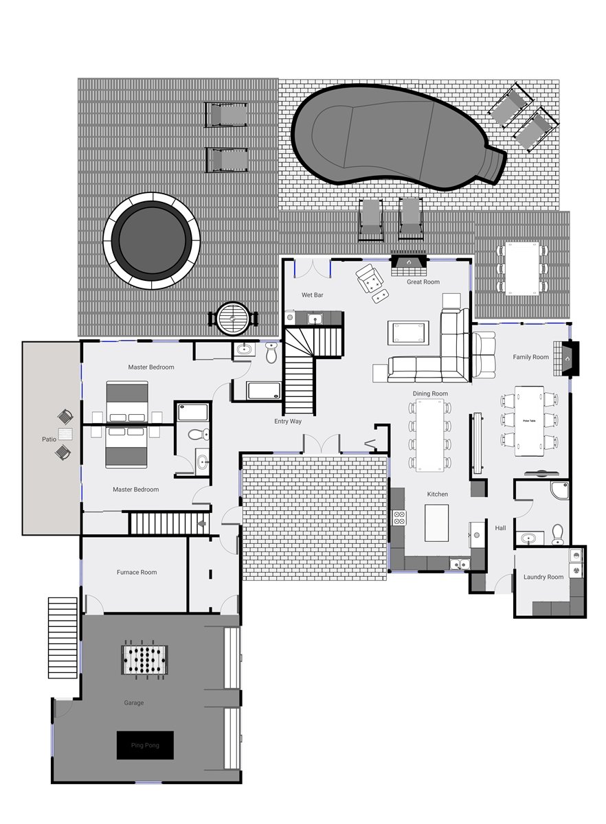 - Expansive living areas including 4 distinct spaces: 2 upstairs, 2 downstairs