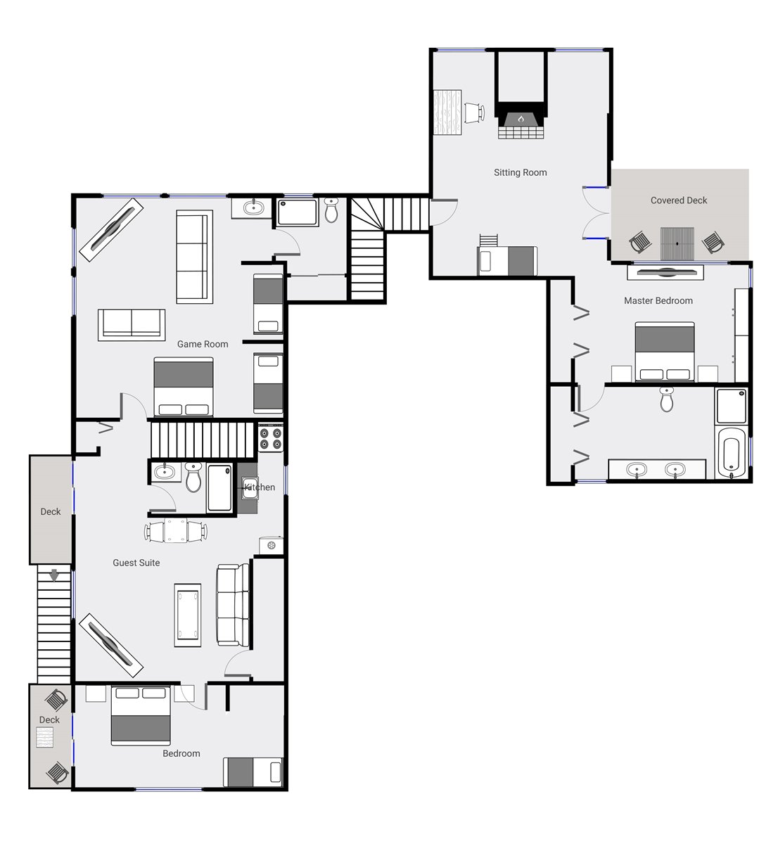 - Newly remodeled 500 sq. ft. Master Suite/Game Room with panoramic views